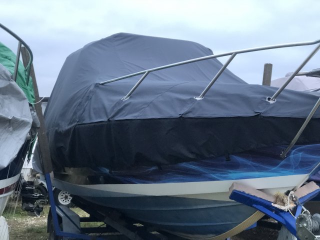 Стояночный (зимний) тент на катер FIBRAFORT STYLE-255. Ткань оксфорд-600.